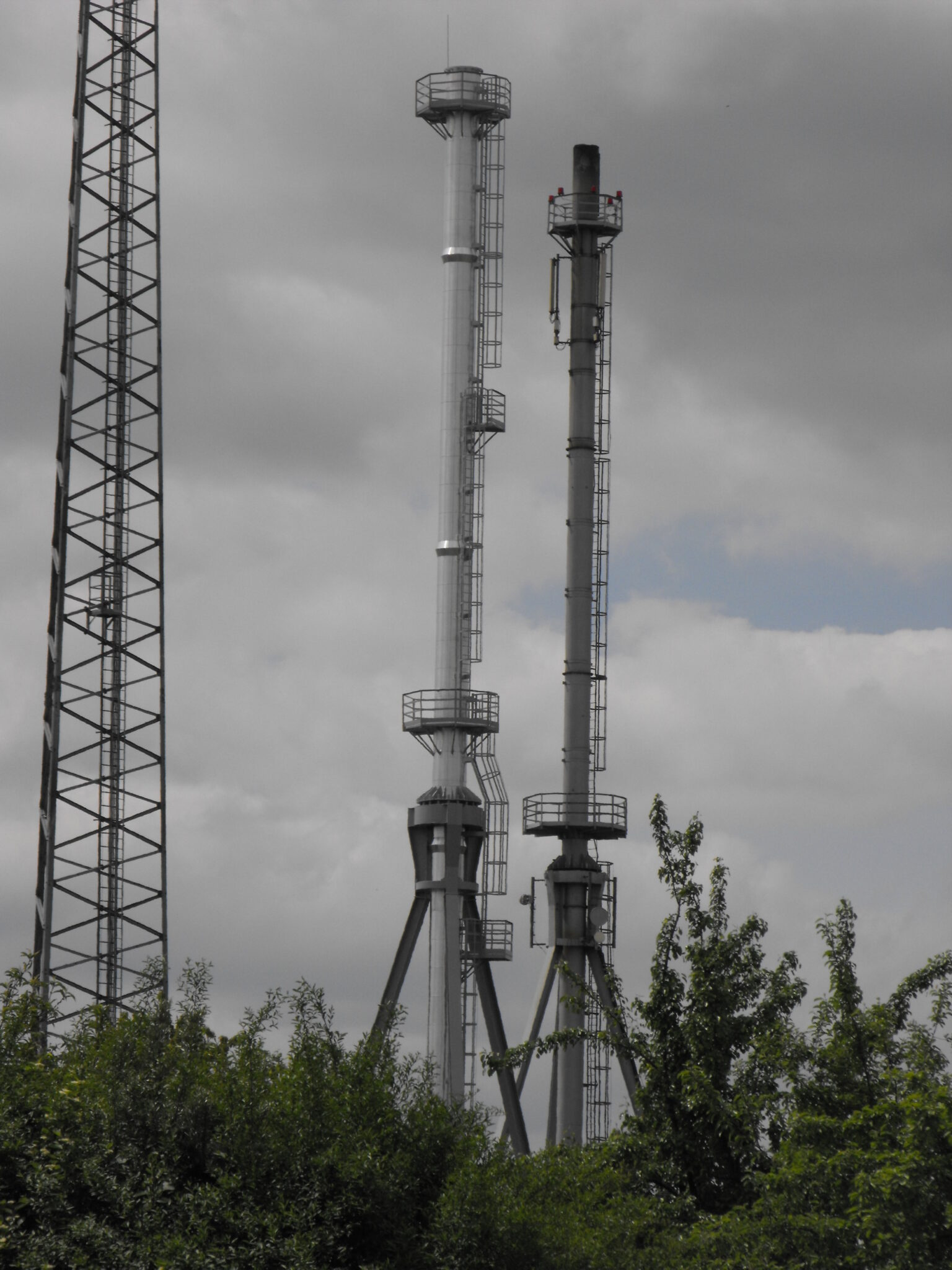 Historyczny montaż komina przemysłowego mocowanego w trójnogu wsporczym Historyczny montaż komina przemysłowego mocowanego w trójnogu wsporczym