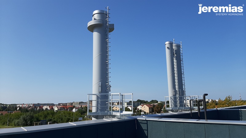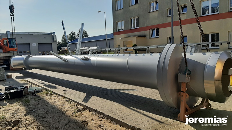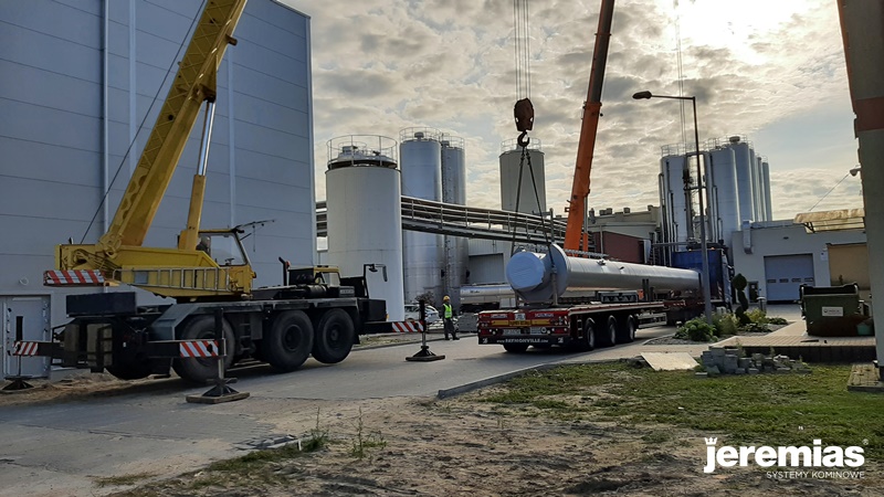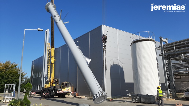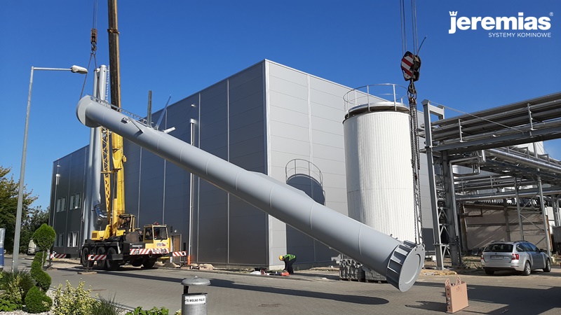 O montażu poprzednich dwóch kominów pisaliśmy tutaj. Podczas ostatniego etapu prac zostały zamontowane czopuchy do dwóch kominów oraz przeprowadzony montaż kolejnego komina FSA o wysokości 20 metrów.